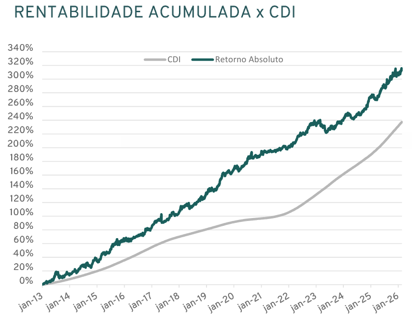 | 2025 | Fundo | 0.74% | -0.63% | -0.99% | 2.26% | 2.27% | 1.60% | -0.12% | 0.71% | 2.47% | 0.20% | 1.90% | -1.44% | 9.22% | 307.11% |